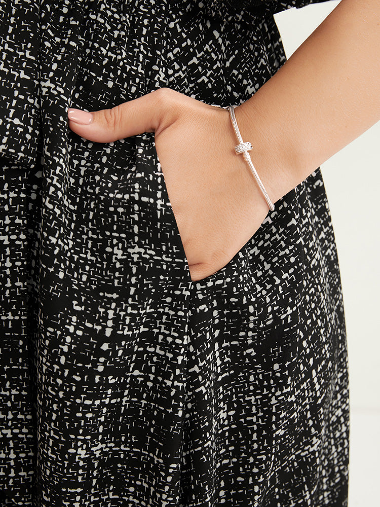 Geometric Print Belted Button Detail V Neck Ruffles Dress