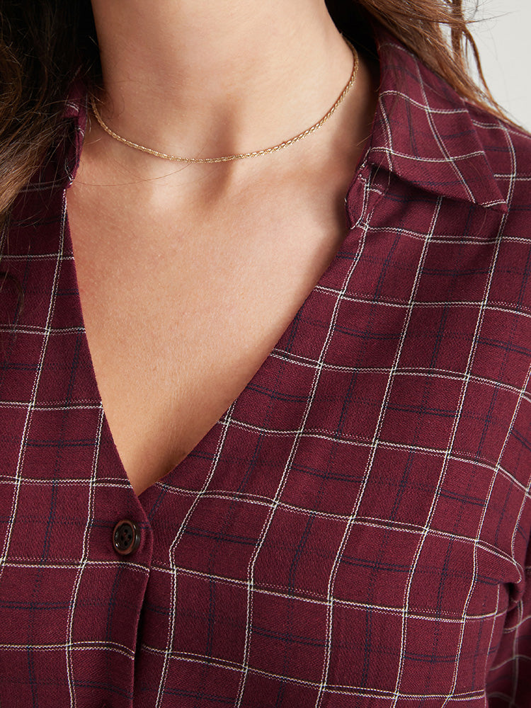 Gingham Pocket Button Up Bell Sleeve V Neck Dress Without Belt