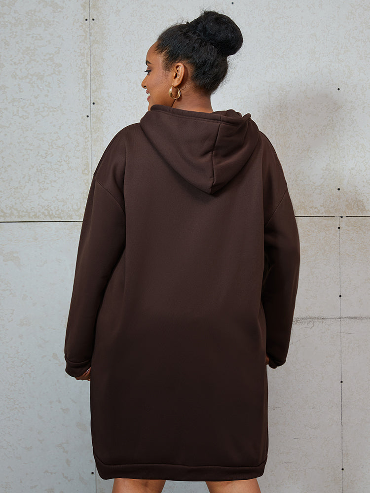 Graphic Print Zipper Drawstring Sweatshirt Dress