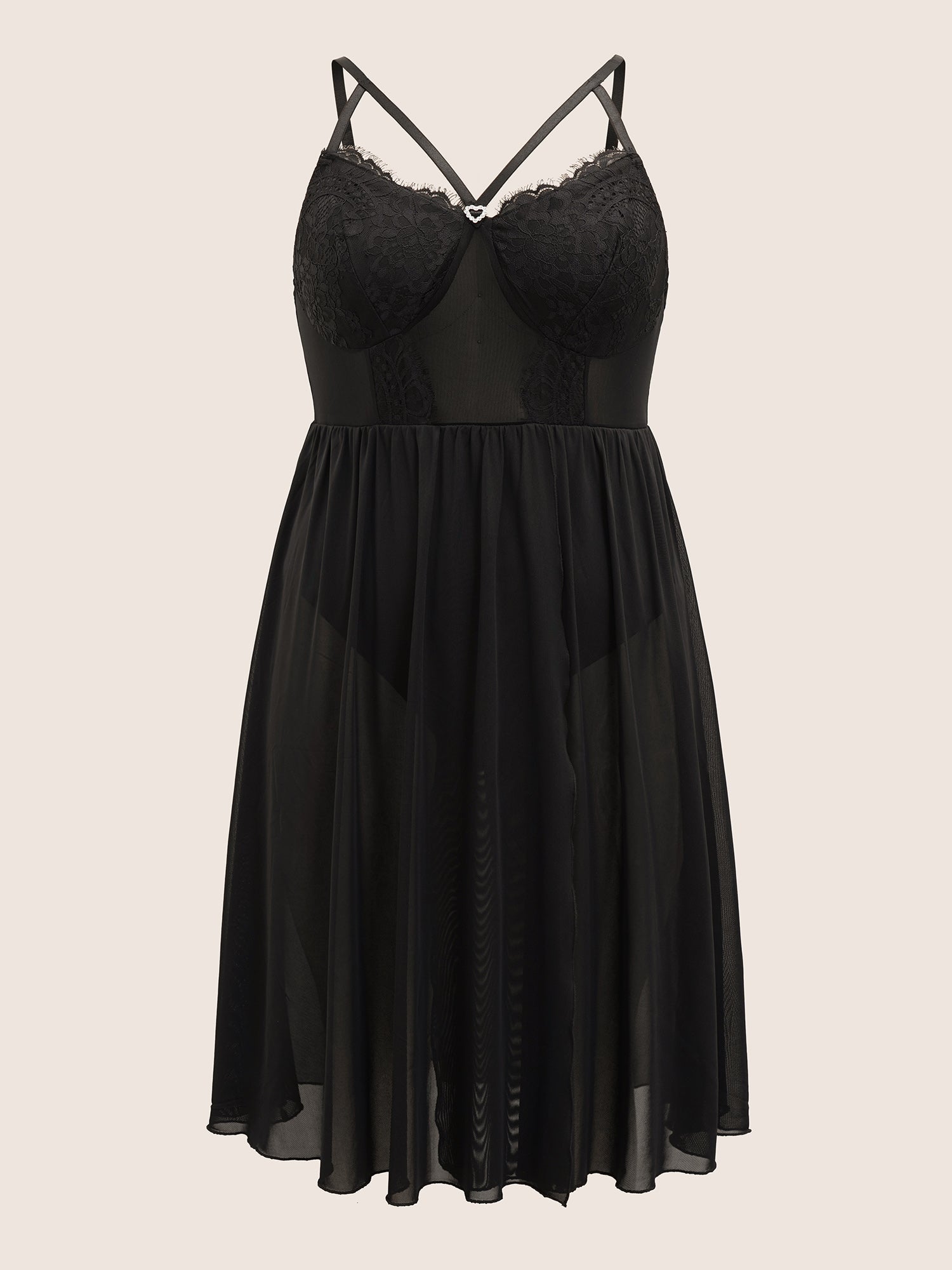 Heart Rhinestone Crisscross Split Hem Sleep Jumpsuit