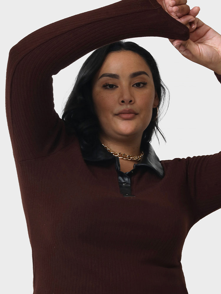 Lapel Collar Patchwork Bodycon Top