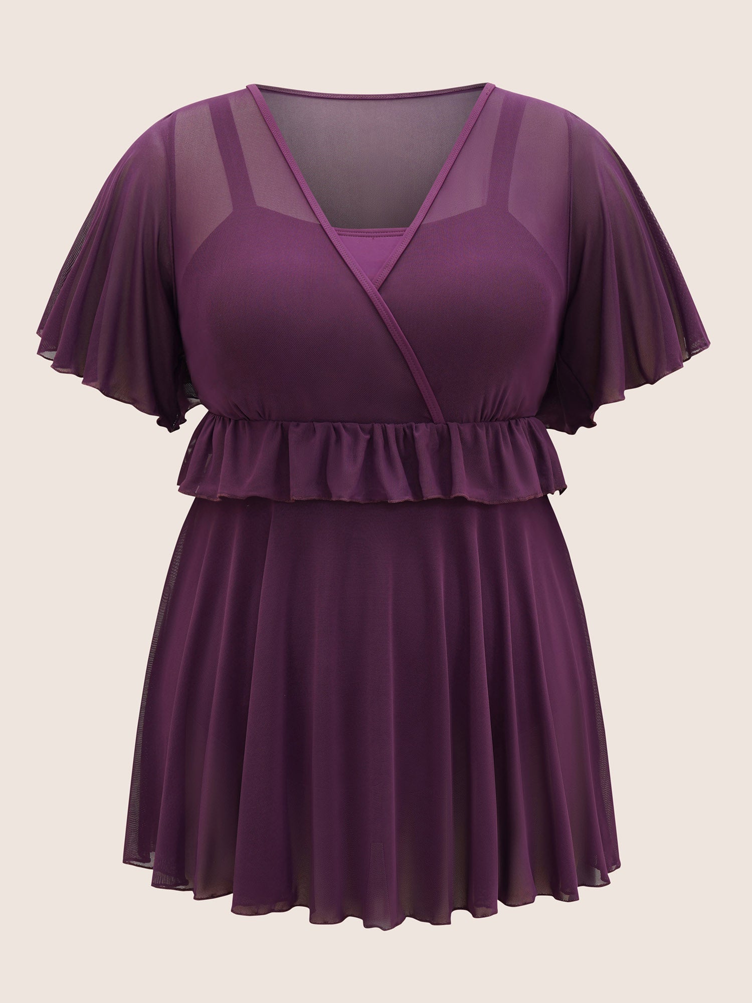 Layered Ruffle Trim Mesh Swim Dress