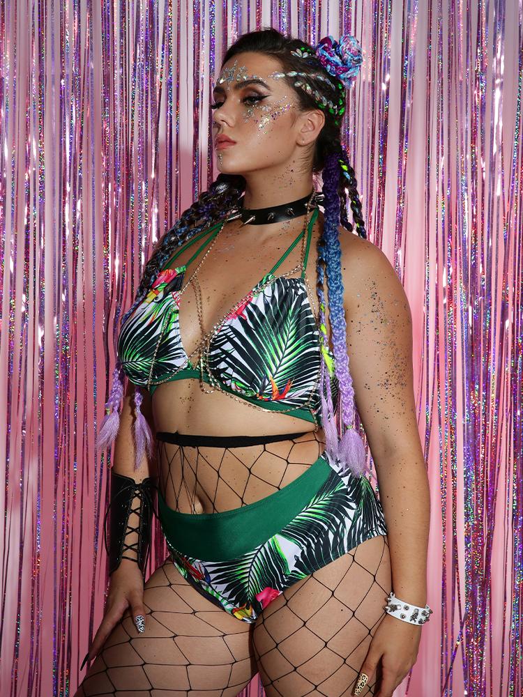 Leaf Backless Knotted Tankini