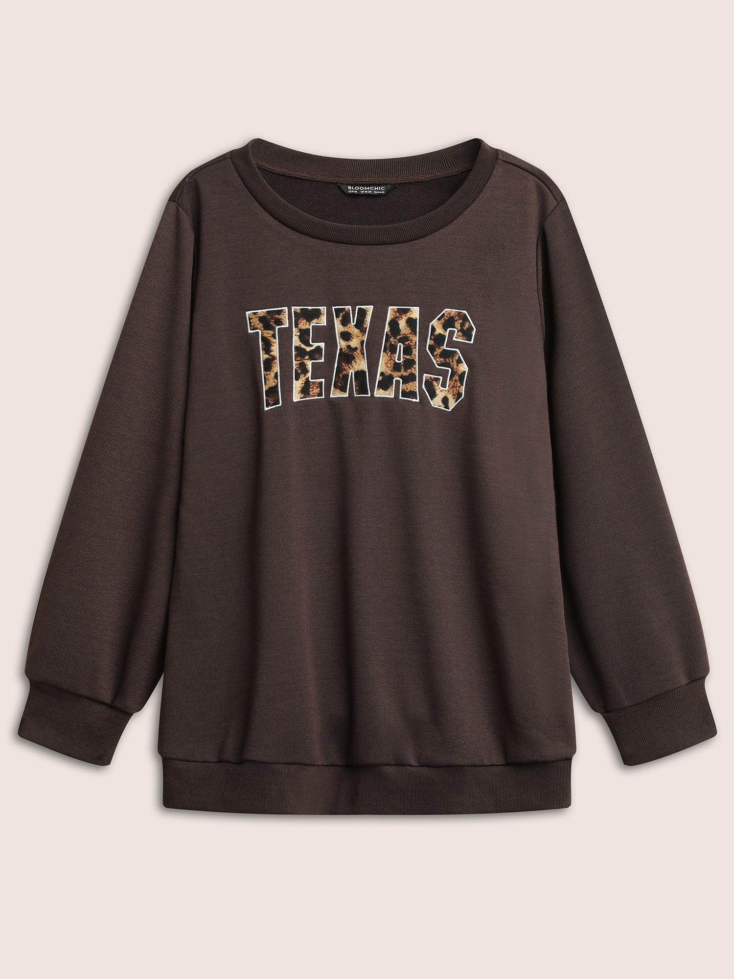 Leopard Embroidered Patch Rib Knit Sweatshirt