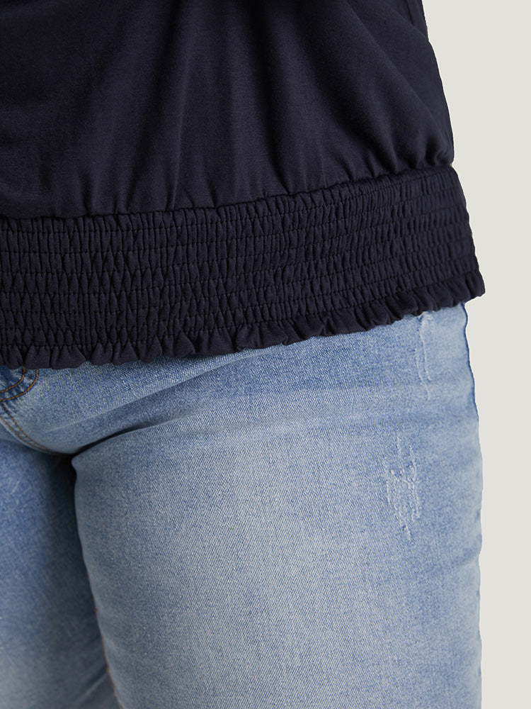 Letter Print Batwing Sleeve Shirred Hem T-shirt