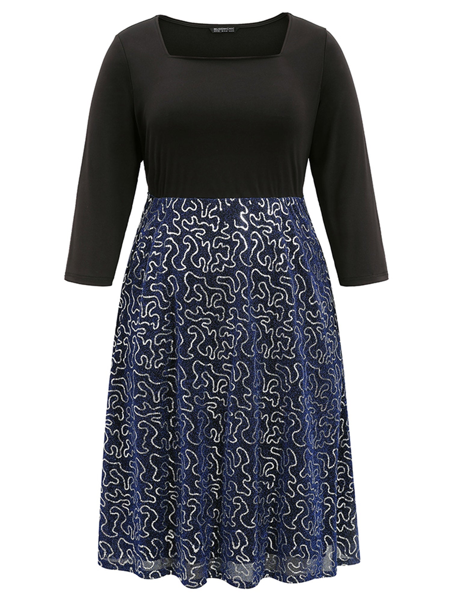 Patchwork Sequin Elastic Waist Square Neck Dress
