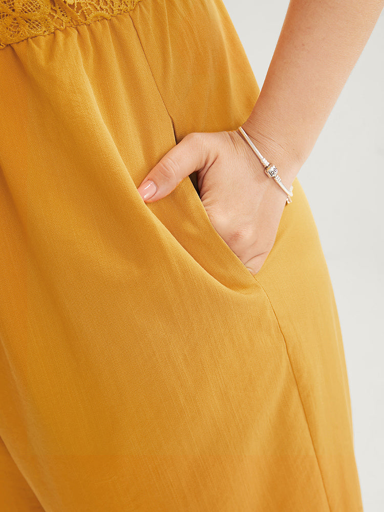 Plain Contrast Lace Pocket Spaghetti Strap Jumpsuit
