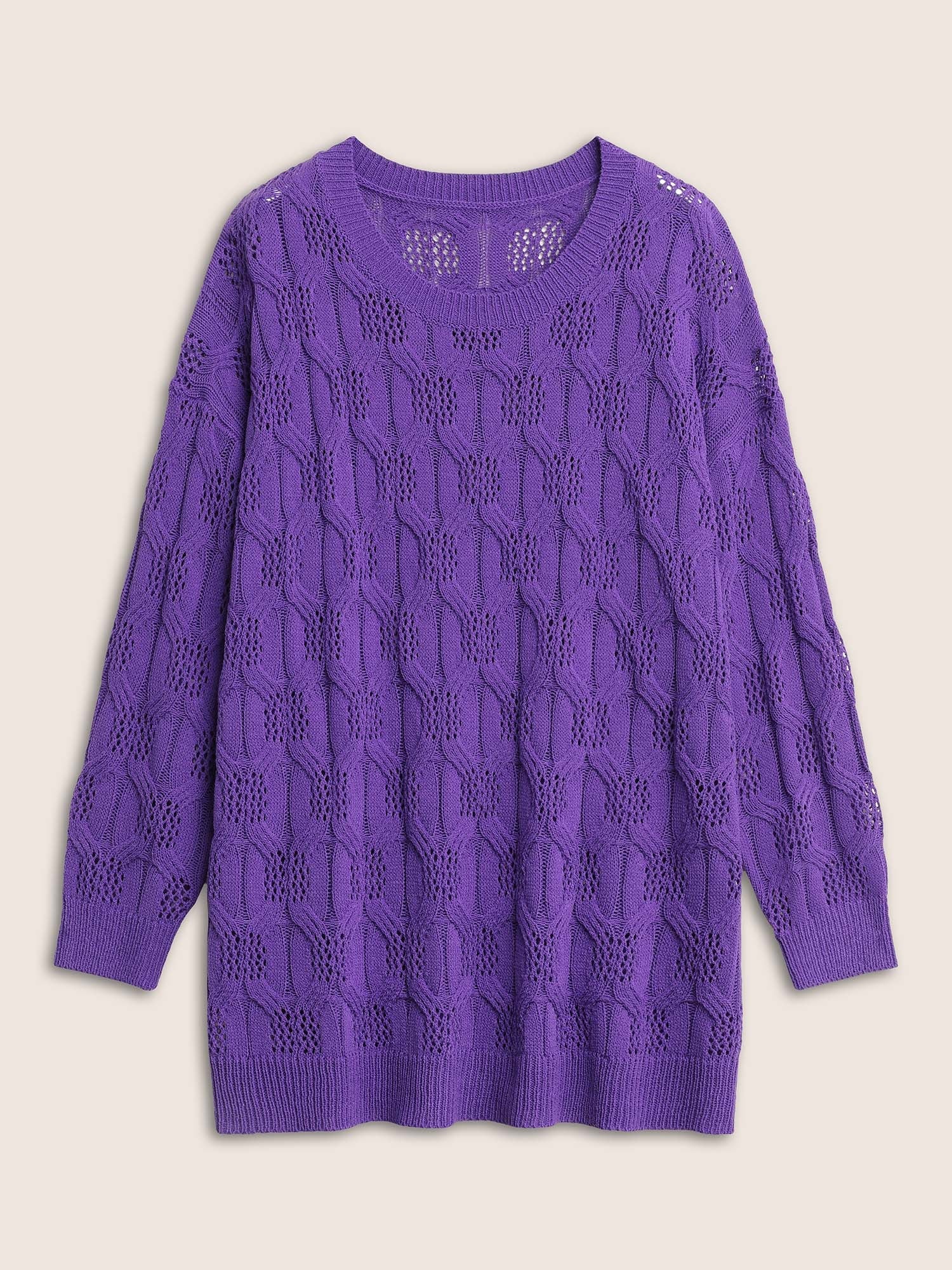 Plain Drop Shoulder Geometric Hollow Out Pullover