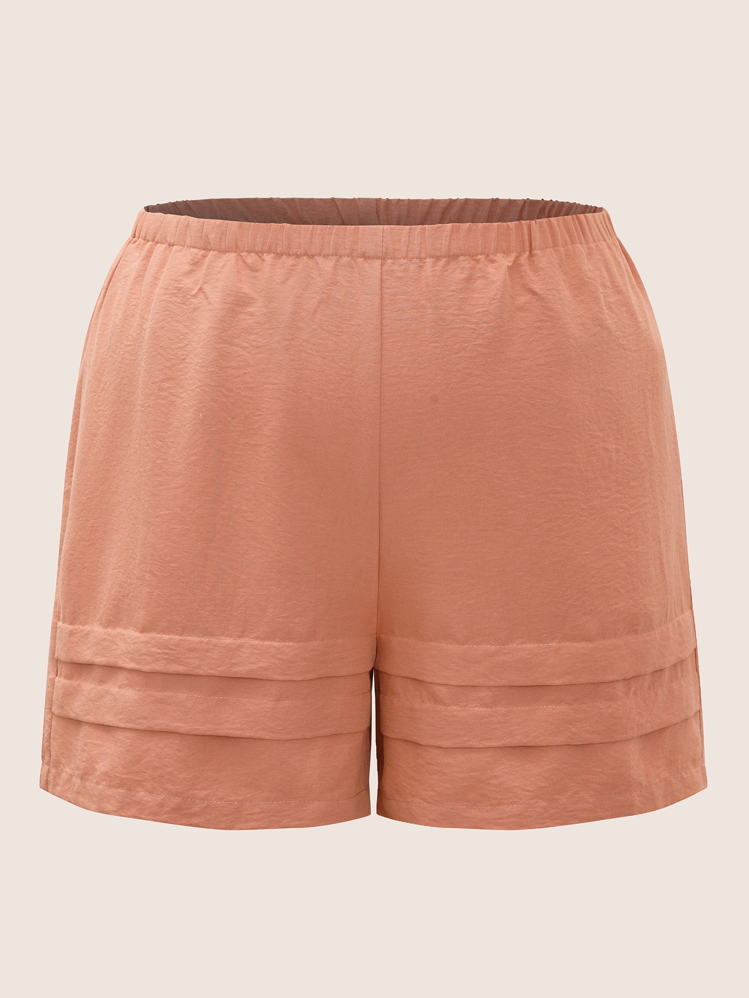 Plain Pleated Elastic Waist Pocket Crepe Sleep Bottoms