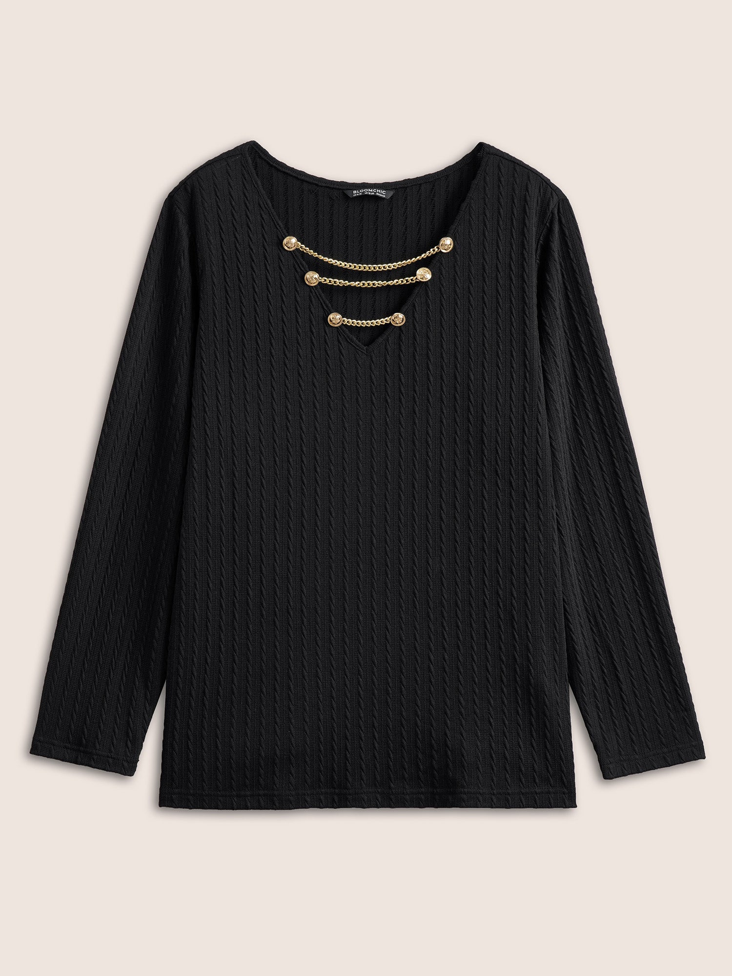 Plain Textured Metal Chain Detail T-shirt