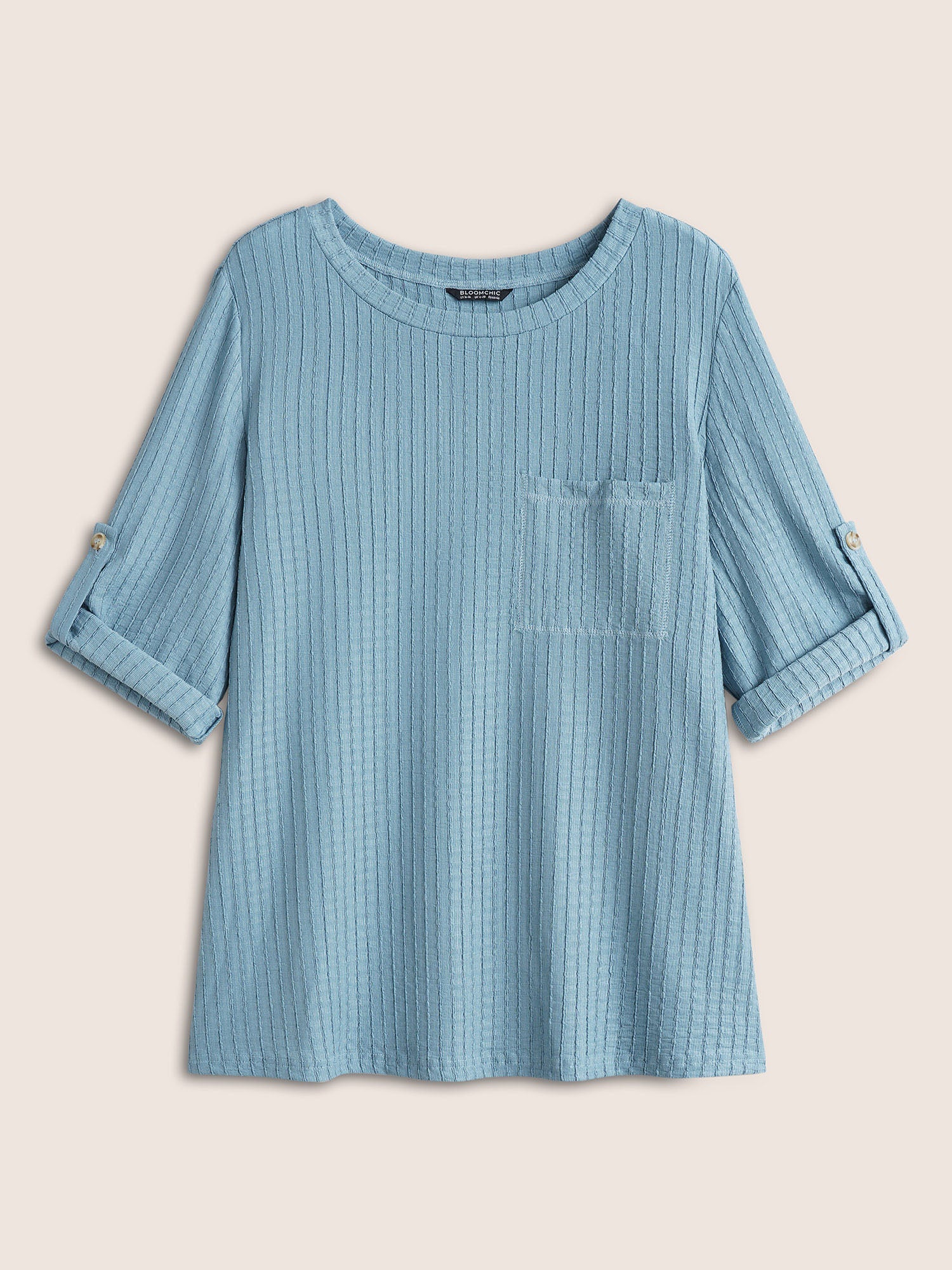 Plain Textured Patched Pocket Tab Sleeve T-shirt