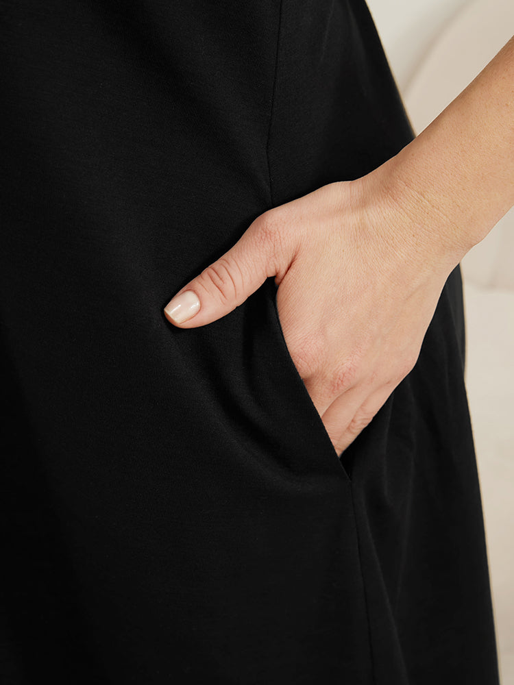 Plain V Neck Sleeveless Pocket Lace Insert Night Dress