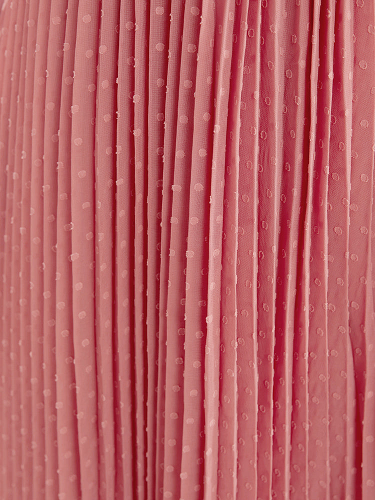 Polka Dot Button Through Pocket Twist Front Pleated Dress