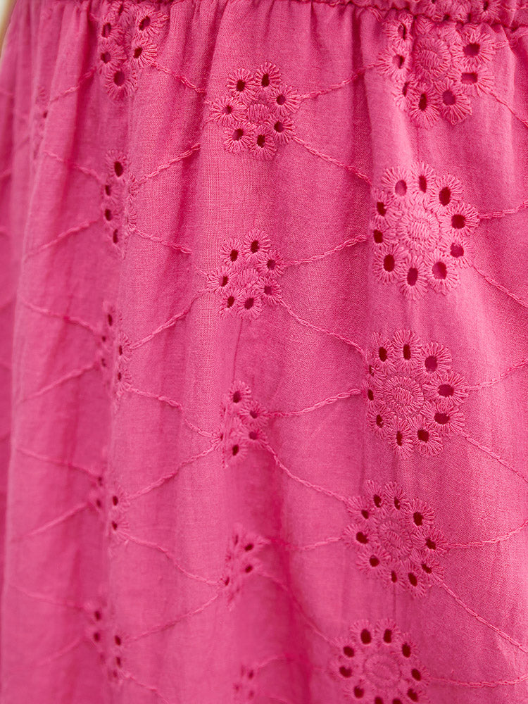 Solid Broderie Anglaise Pocket Frill Trim Cold Shoulder Dress