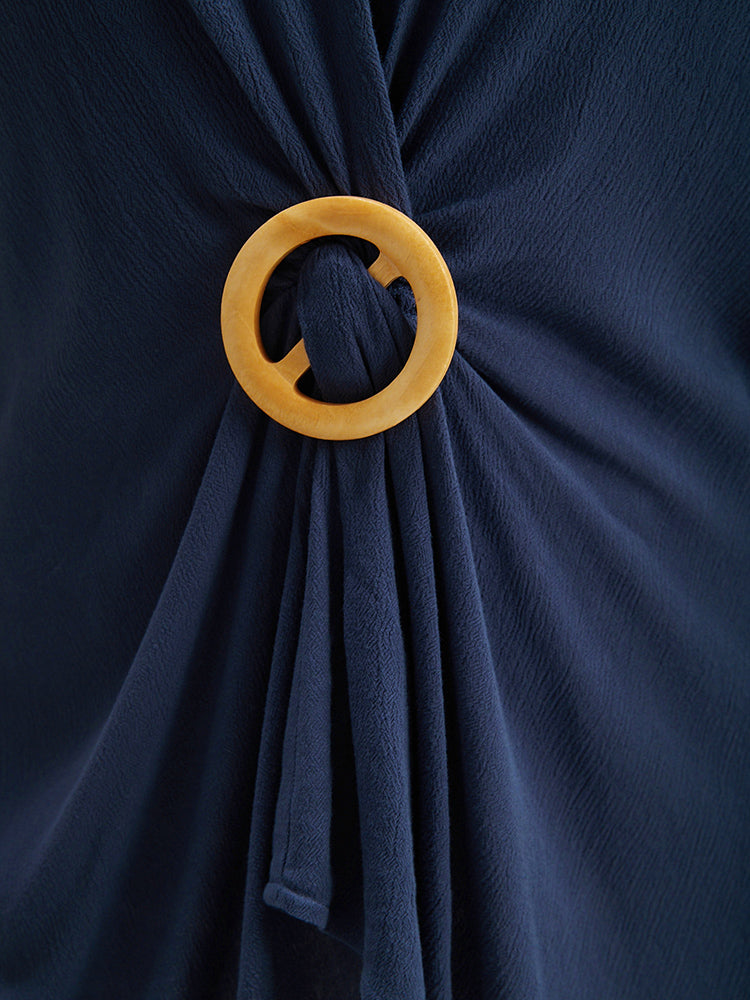 Solid Buckle Dolman Sleeve Twist Front Blouse