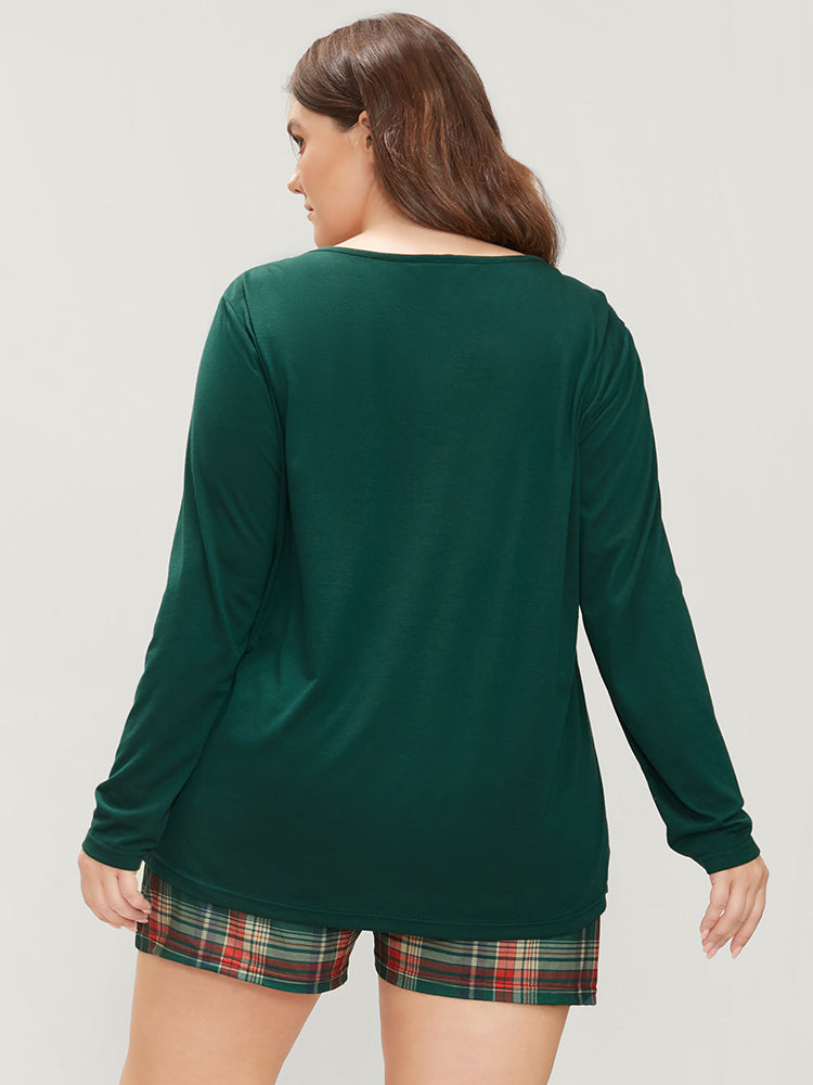 Solid Button Detail Ties Plaid Pajama Set