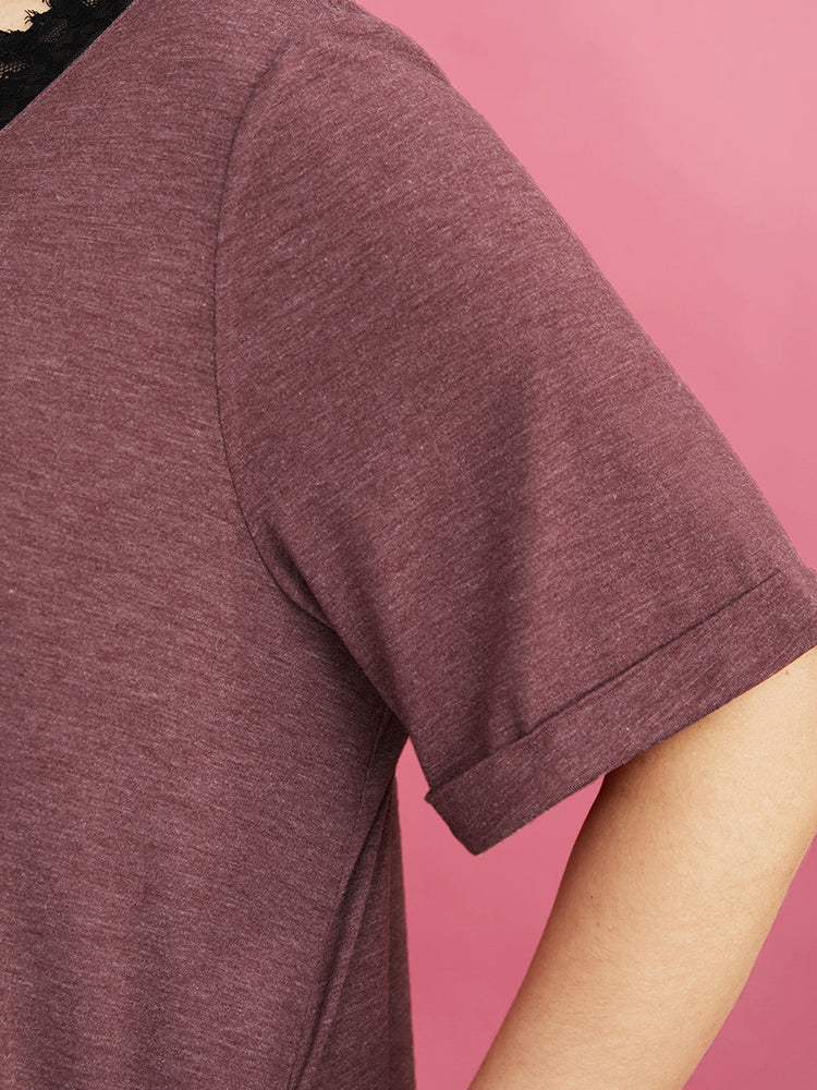 Solid Lace Trim Pocket V Neck Sleep Dress