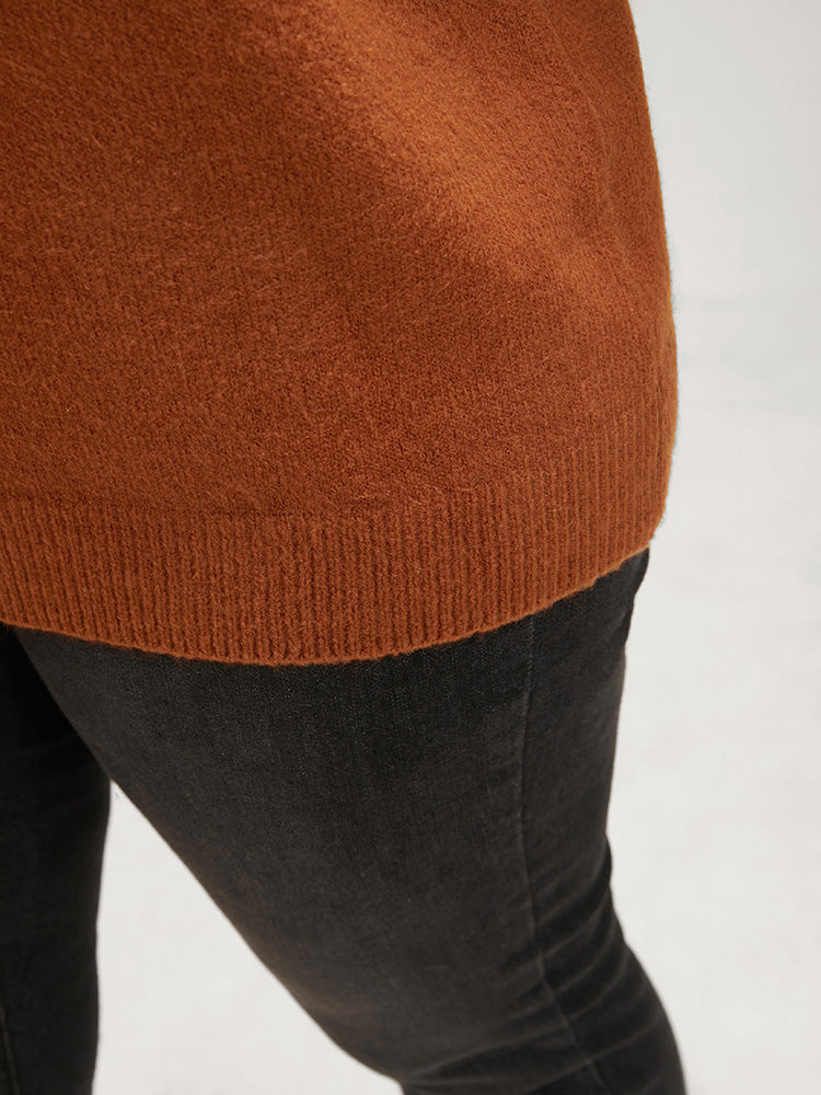 Solid Pointelle Knit Lace Trim V Neck Knit Top
