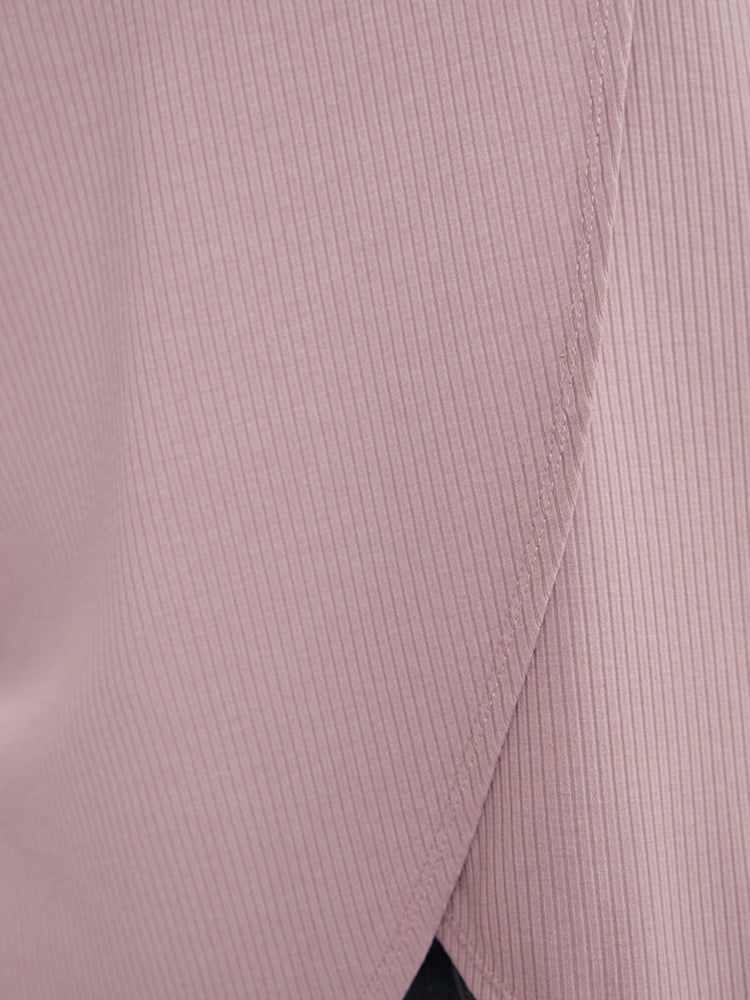 Solid Round Neck Asymmetrical Hem Rib Knit Tee