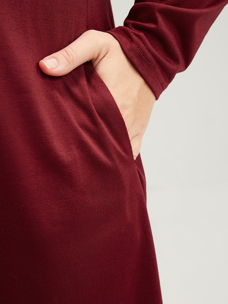 Solid Round Neck Lace Insert Night Dress