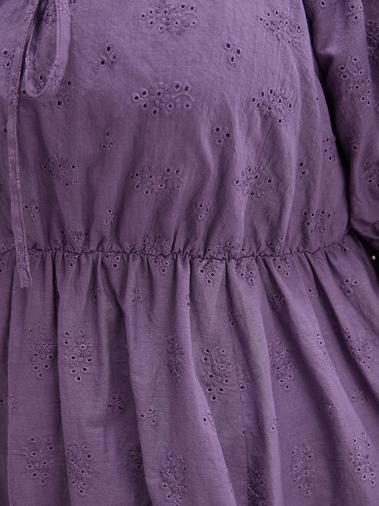 Solid Ruffle Knot Scalloped Trim Broderie Anglaise Blouse