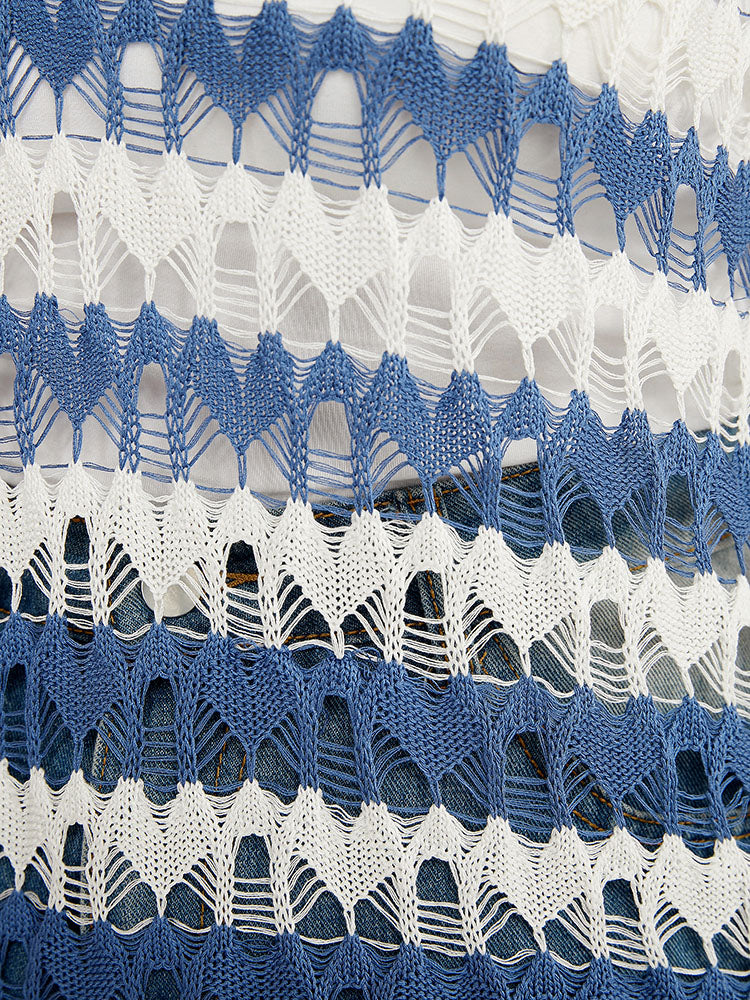Striped Contrast Cut Out Sleeveless Knit Top