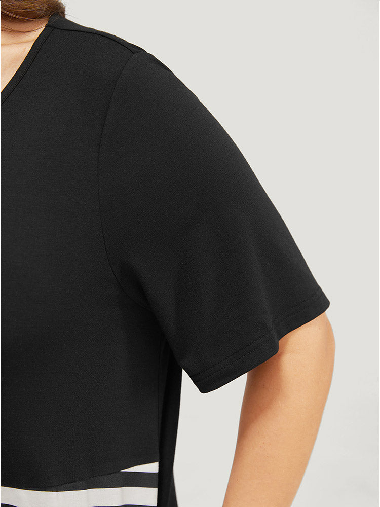 Striped Contrast Round Neck Pocket Sleep Dress