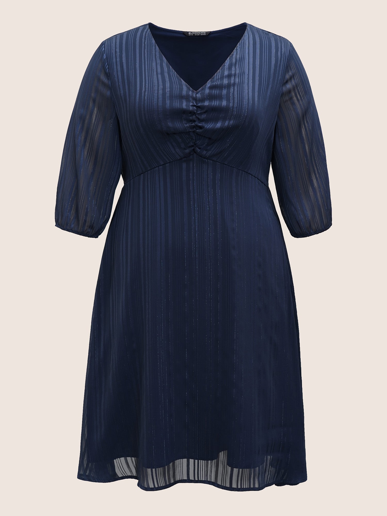 Textured Chiffon Mesh Patchwork Ruched Dress