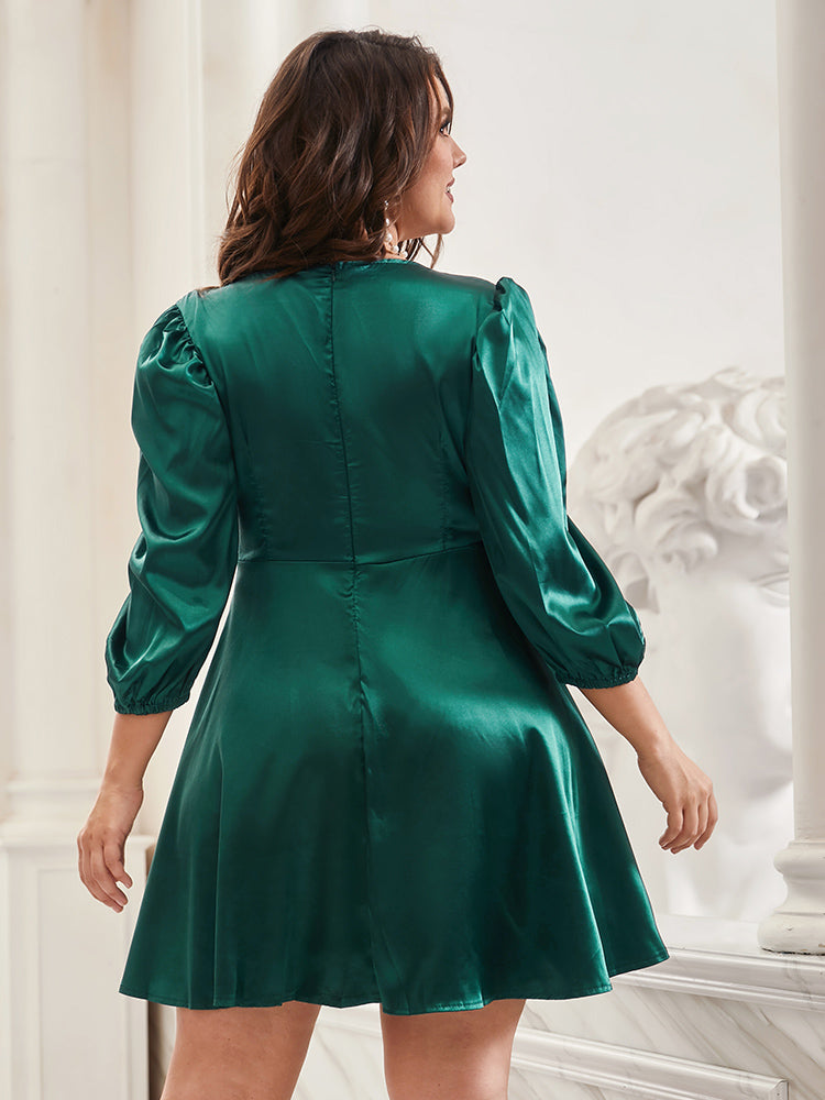 Tie Neck Flare Hem Dress