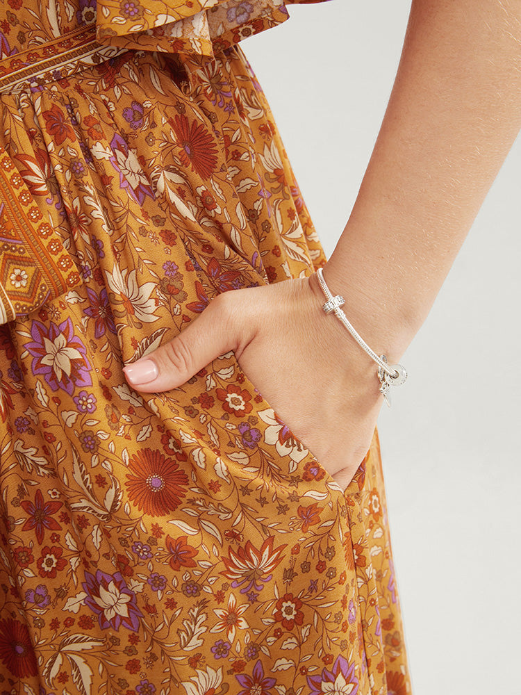 Bandana Print Surplice Neck Pocket Ruffles Belted Split Hem Dress