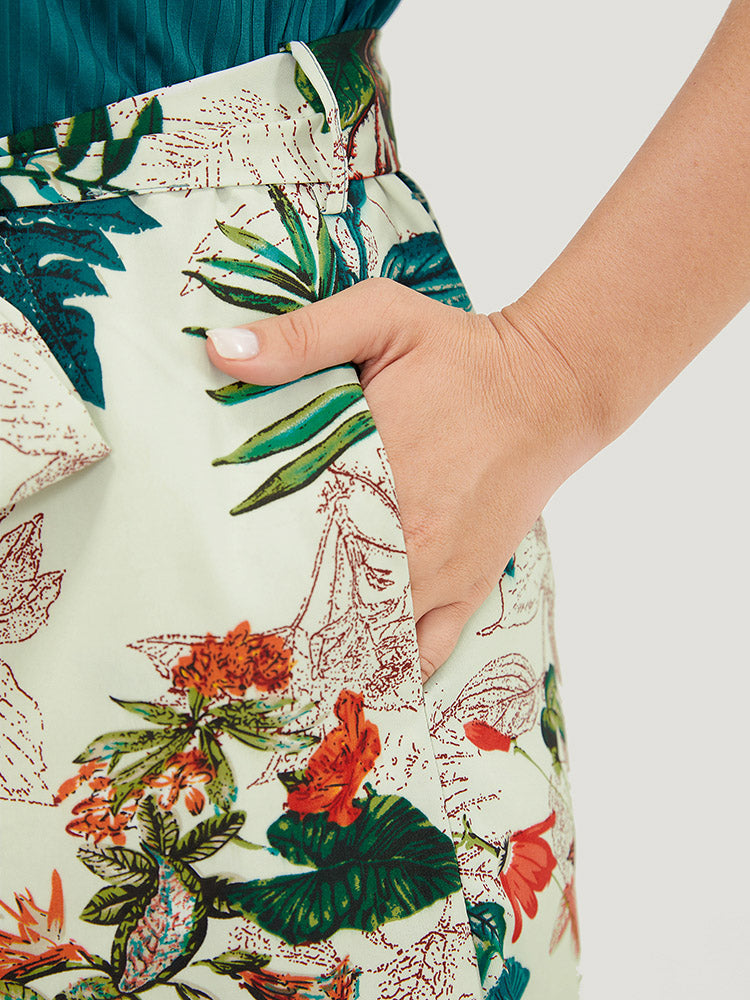 Tropical Patchwork Belted Notched Rib Knit Tank Romper